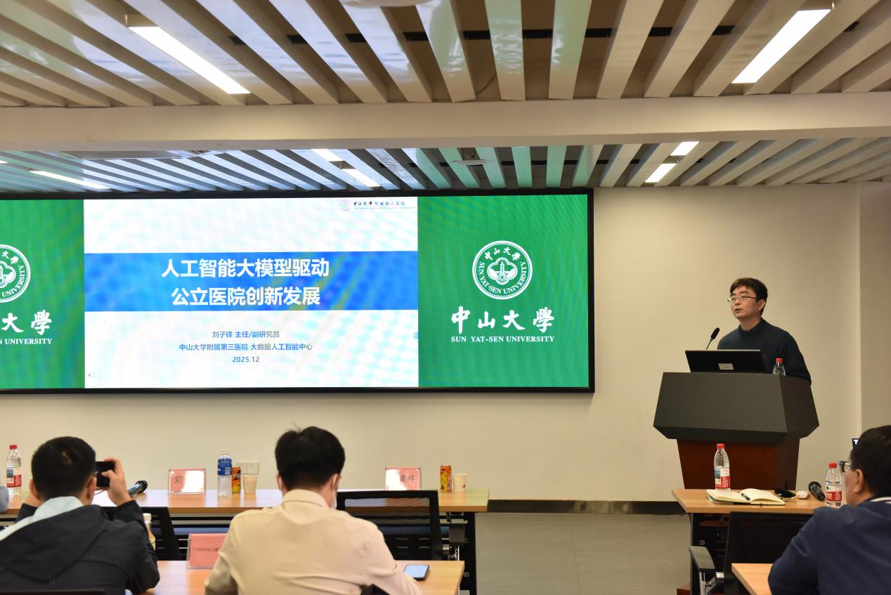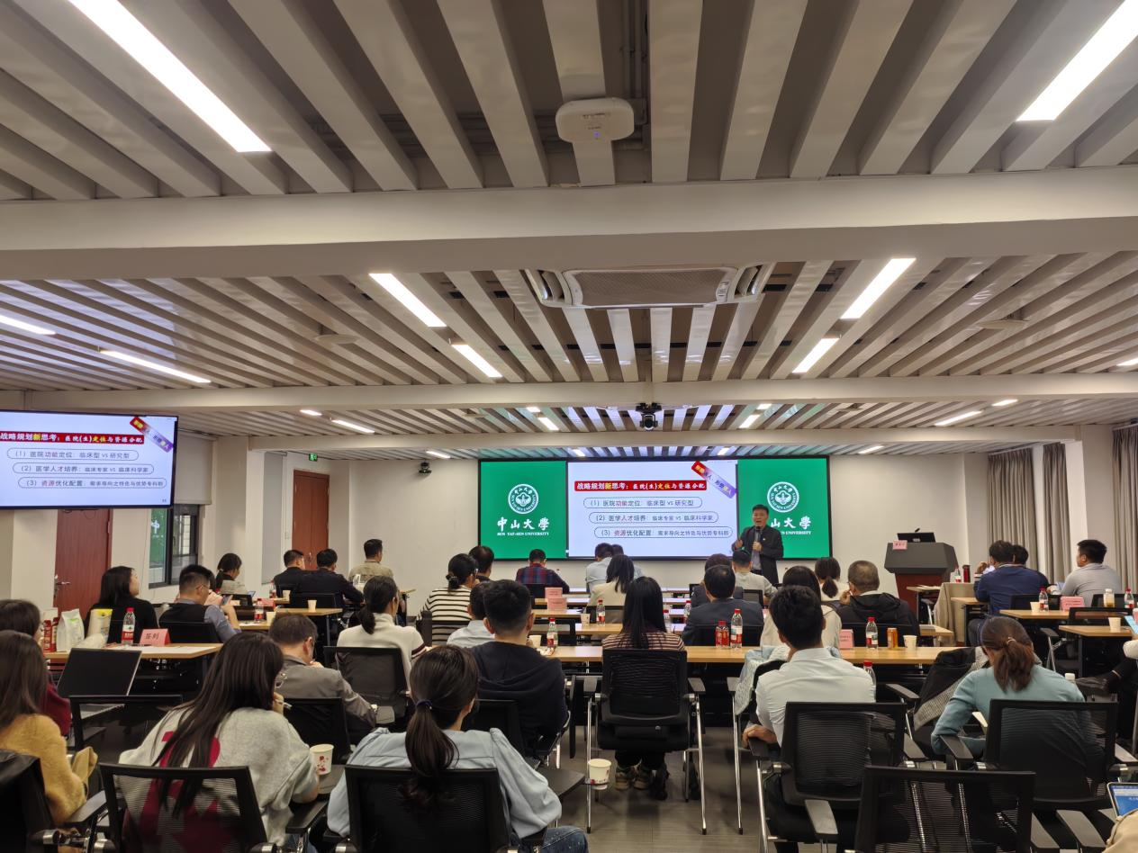 黄奕祥教授、中山大学附属第三医院大数据人工智能中心刘子锋主任进行授课。黄奕祥教授围绕“公立医院十五五规划重点与创新发展思路”展开解读,他指出,当前国家面临疾病谱改变、健康战略转变的新形势,公立医院需以临床专科能力建设为核心,积极应对医院发展的新挑战;同时通过体系整合,实现“主动赋能”,构建“全专协同”服务模式,实现医院发展新路径。黄教授还强调,公立医院需结合政府战略进行远近规划,合理取舍临床专科能力与学科建设,以及加强战略人才储备与培养。