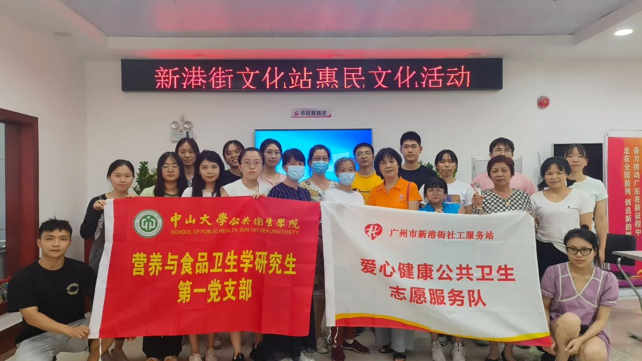 营养与食品卫生学研究生第一党支部与结对共建的广州市中大社工服务中心党支部开展共建活动,研究生支部党员分别在7月6日、12日、13日及20日为新港街长者开展慢性疾病管理知识培训,以及给加入“健康卫士在行动”的社区志愿者开展慢性病预防的相关知识培训,进行营养学知识科普,指导志愿者如何开展相关的社区服务,并与社区志愿者共同深入社区开展志愿活动,指导长者通过合理膳食预防和延缓各类疾病的进展,延长健康寿命,提高生活质量。支部党员通过此次活动,把所学所得应用到实践中。