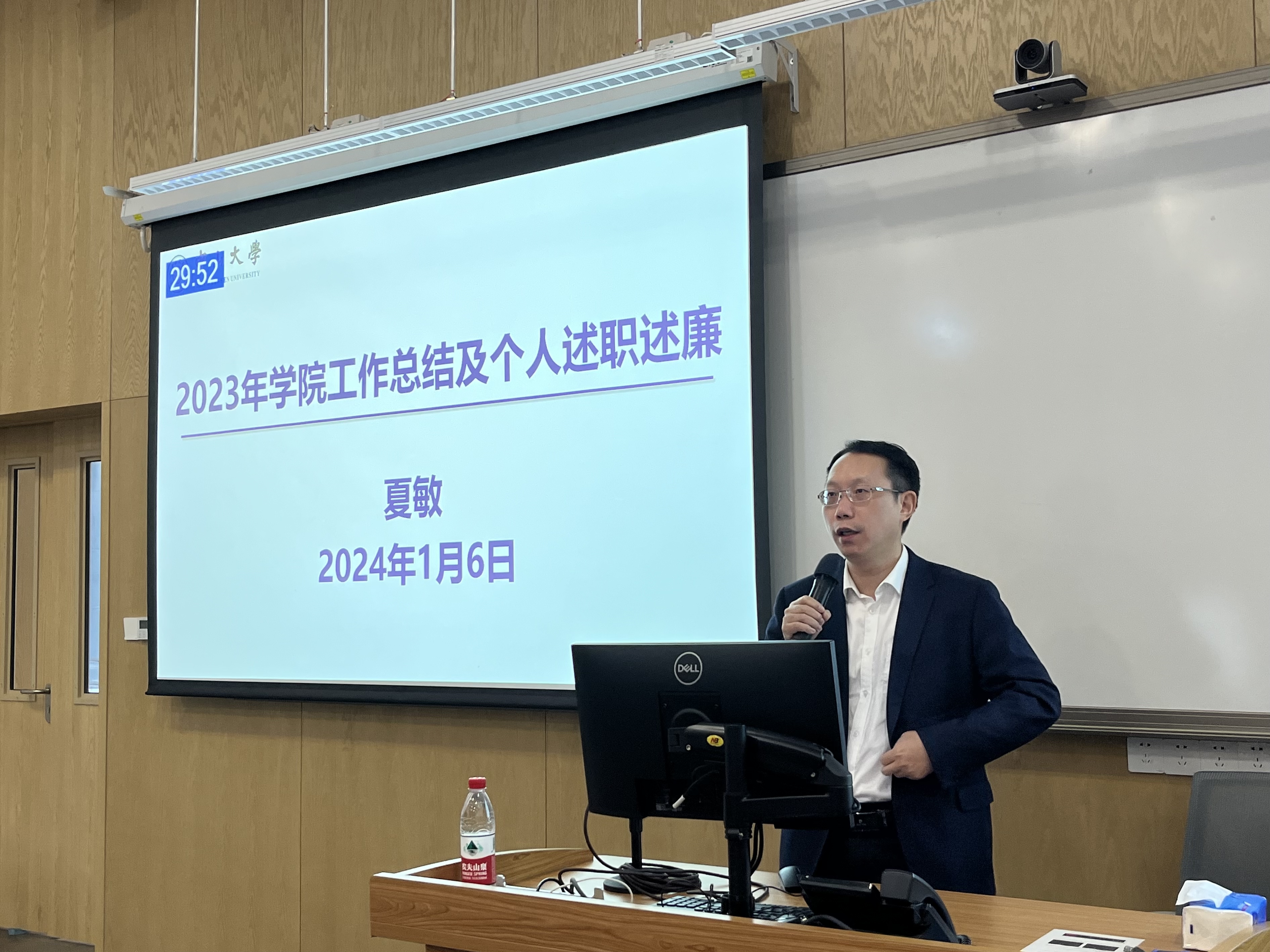 召开2023年中层领导人员述职评议会,学院领导班子成员逐一进行述职,全体教职工听取述职报告并进行民主测评,会议由学院党委书记范瑞泉主持。