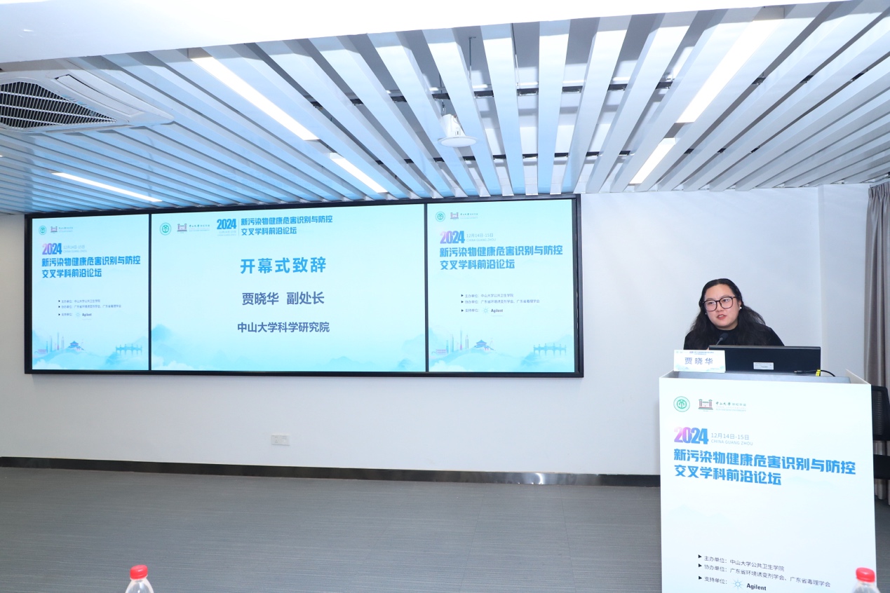 始终将学科交叉视为推动学院高质量发展的核心引擎,今年适逢中大百年华诞的重要时刻,为积极响应新污染物治理国家重大战略,积极筹备此次论坛,汇聚智慧,启迪新思,共同探讨新污染物防控的有效路径。中山大学科学研究院纵向处贾晓华副处长作开幕致辞,她特别指出新污染物对全球生命健康的严峻挑战,党的二十大报告中明确提出要“深入推进环境污染治理”“提升生态系统多样性、稳定性和持续性”。此次论坛的召开正是响应国家政策、解决实际问题的重要学术行动,希望以此为契机促进学科融合,拓宽学术视野,推动公共卫生与预防医学领域取得更多突破性进展,为“健康中国”“美丽中国”的建设提供有力支撑。