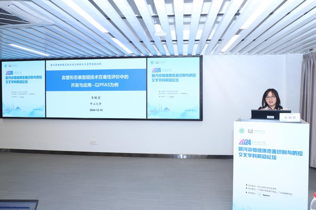 中山大学韦艳宏教授以《血管形态表型组技术在毒性评价中的开发与应用——以PFAS为例》为题,分享了其团队基于斑马鱼模型和3D血管类器官模型的血管形态表型组分析技术。她聚焦毒性评价面临的挑战和毒性测试替代方法革新的需求,建立了更灵敏、更精准、更高效的血管毒性评价范式和体系,并全面展示了该技术在精准评估新污染物血管毒性的实际应用和广阔前景,为环境污染物心血管毒性评价提供重要工具。
