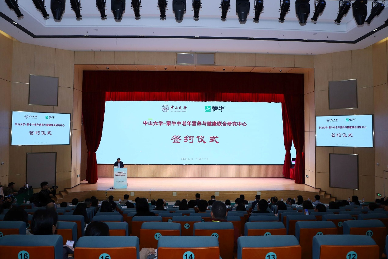 2025年1月11日,“中山大学-蒙牛中老年营养与健康联合研究中心”签约暨揭牌仪式在中山大学广州校区北校园校友会堂顺利举行。