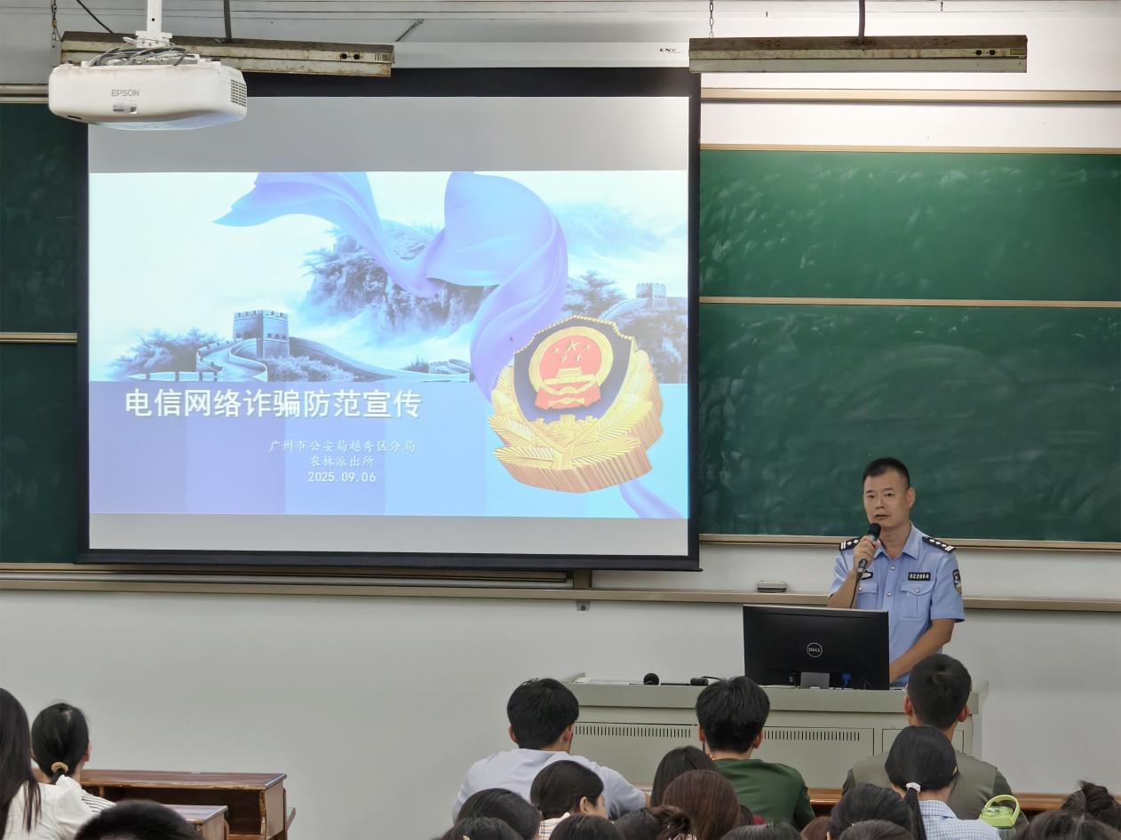 9月11日晚,学院邀请了中山大学党委保卫部梁瑜老师和农林街派出所曾杰星警官面向新生开展校园安全和电信网络反诈宣传讲座。