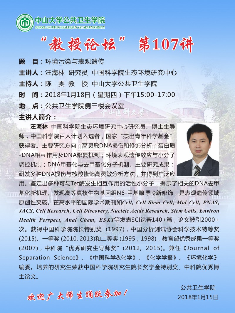“教授论坛”第107讲-环境污染与表观遗传